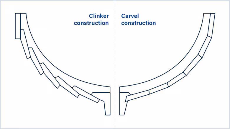 Stellet giver kravelkonstruktionen dens styrke. Dette betyder, at man kan have en fuld rig med sejl, og at skroget kan bygges længere og bredere. Et klinket skrog er lettere, fordi det har mindre skelet og bevæger sig hurtigere ved at det flyder højere og flytter mindre vand. En klinket konstruktion er ikke så stiv som en kravelkonstruktion, og der er derfor begrænsninger for, hvilken type rig, den kan have.
